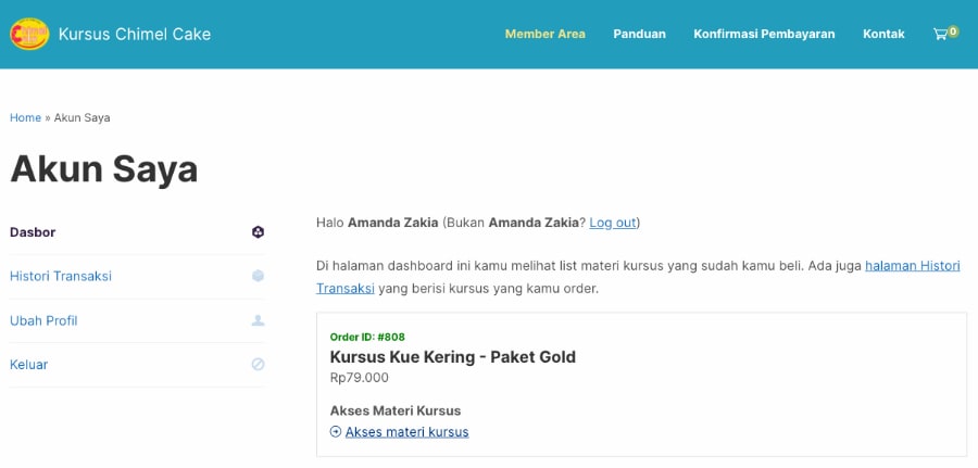 Kamu juga bisa mengakses link materi kursus dengan cara login terlebih dahulu melalui https://kursus.chimelcake.com/my-account/.